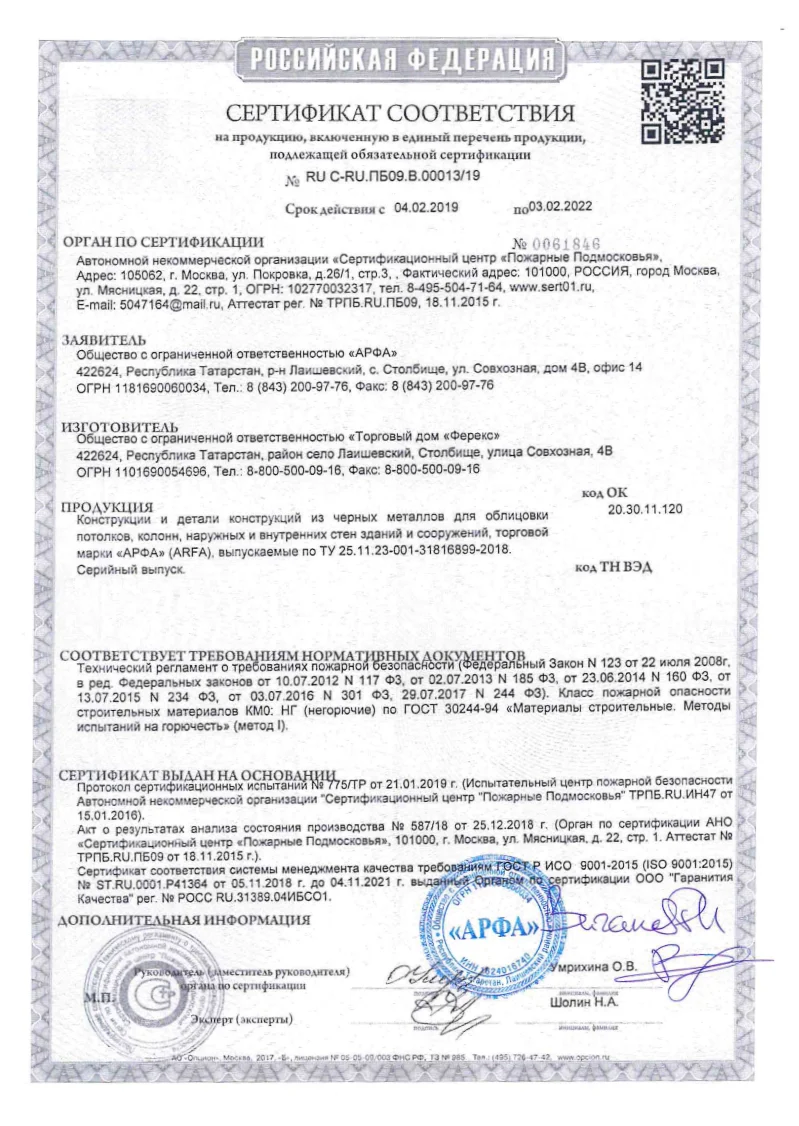 ООО «АРФА» — российский производитель металлических потолочных и стеновых систем полного цикла.
